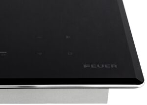 – Mặt kính cường lực Schott Ceran 4 cạnh vát 12mm phủ atranzit chống xước, mang đến sự nổi bật và sang trọng cho bếp FEUER, đồng thời giúp giảm ma sát và độ rung của bếp trong quá trình nấu.